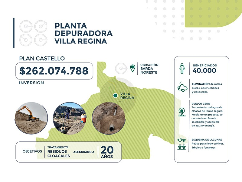 La planta actual se encuentra superada en su capacidad de tratamiento, por lo cual esta obra implica mejoras muy significativas para todo Villa Regina.