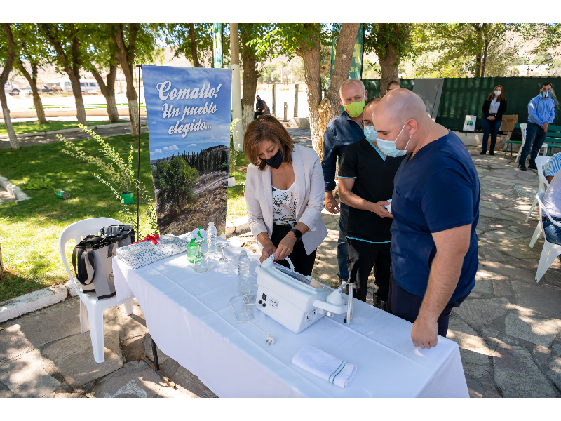 En Comallo entregó equipamientos por $5.000.000, aportes por $3.000.000 destinados para obras delegadas, y equipamiento de kinesiología para el hospital "Beatriz Crobatto" de esa ciudad.